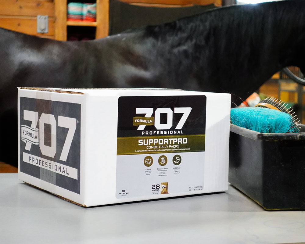 Support Pro is the ultimate solution for streamlined nutrition, offering our premium formulas in 28 convenient, single-serving daily packs. These "combo packs" simplify the process of providing your barn with a balanced Formula 707 supplement, making it both effortless and cost-effective. You'll save per serving compared to purchasing each component separately in their largest sizes and mixing them yourself!