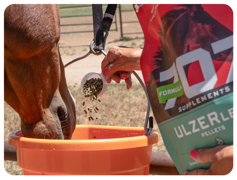 At Formula 707, we understand the importance of a balanced diet and proper nutritional support in your horse’s health regimen. Our ULZERless Pellets offer a unique, science-backed solution designed to mitigate the effects of stomach acid. By providing essential support, our blend helps maintain a healthy stomach environment, reducing the risk of discomfort and promoting a happier, healthier horse. Trust Formula 707 ULZERless Pellets to deliver the quality and efficacy your horse deserves.